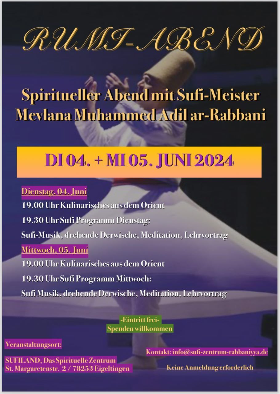 Liebe Gäste, wir freuen uns, die Tore von Sufiland wieder für Sie zu öffnen. Es gelten jedoch nach wie vor die aktuellen coronobedingten Hygienevorschriften. Benutzen Sie daher bitte schon vor Eintritt in das Sufiland, die am Eingang angebrachten Desinfektionsspender.